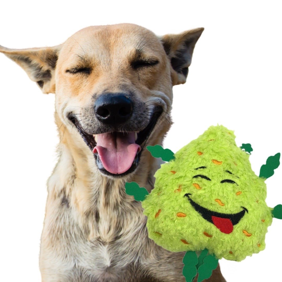 Meet Bud! He is a cute little guy about 6" tall and 4" wide. He has a built-in squeaker and is great for light play. Better yet; for Instagram pics and video of your pet with his own "bud". Your dog will love joining you for 4:20!