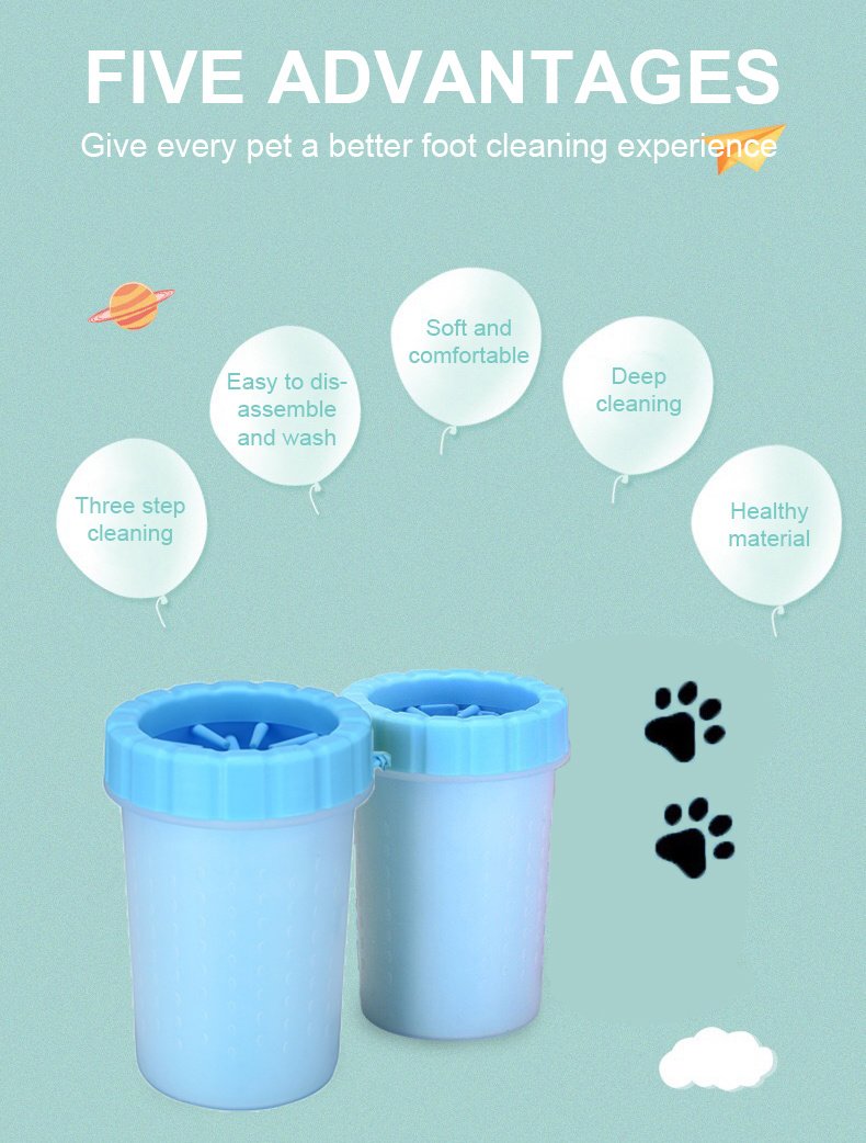 The simple design of Mud-e-Mutt Paw Cleaner makes clean up super easy. Fill the cup with water and pet shampoo (optional), insert one paw at a time and rotate the cup gently at the same time so the silicone bristles gently interact with your pet’s paw. Towel off to complete the cleaning experience.