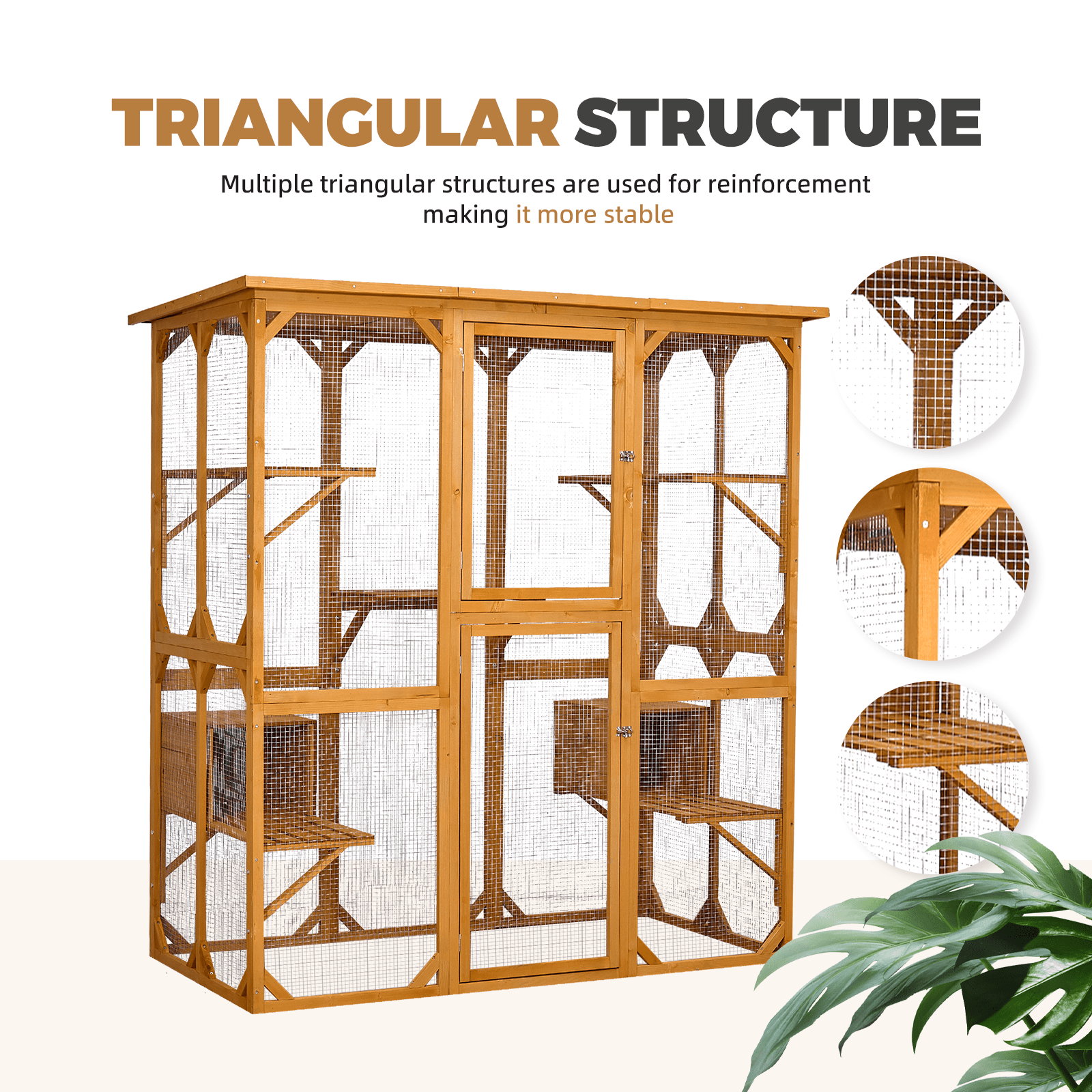 Walk In Style: Oversized convenient front door at 67" with safety latch allows adult people to access the cat enclosure to interact with the pets, while making cleaning easier