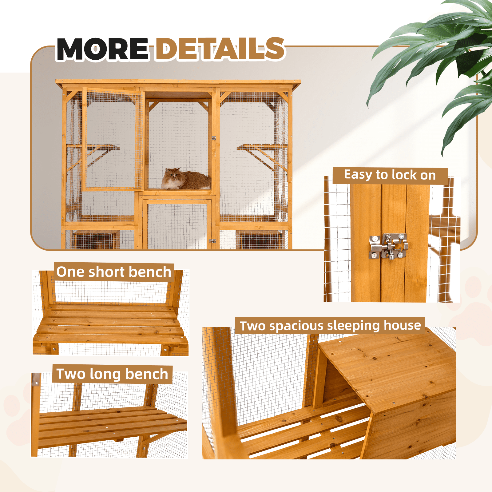Two Sleeping House: Fully enclosed cat catio with two spacious sleeping houses offer super soft and warm lounging spots, give your feline friends a luxurious napping experience