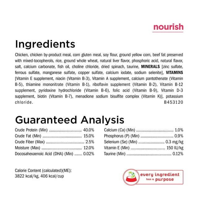 Kitten formula including high-quality ingredients like real chicken as the number 1 ingredient, and high protein to support your kitten's developing muscles